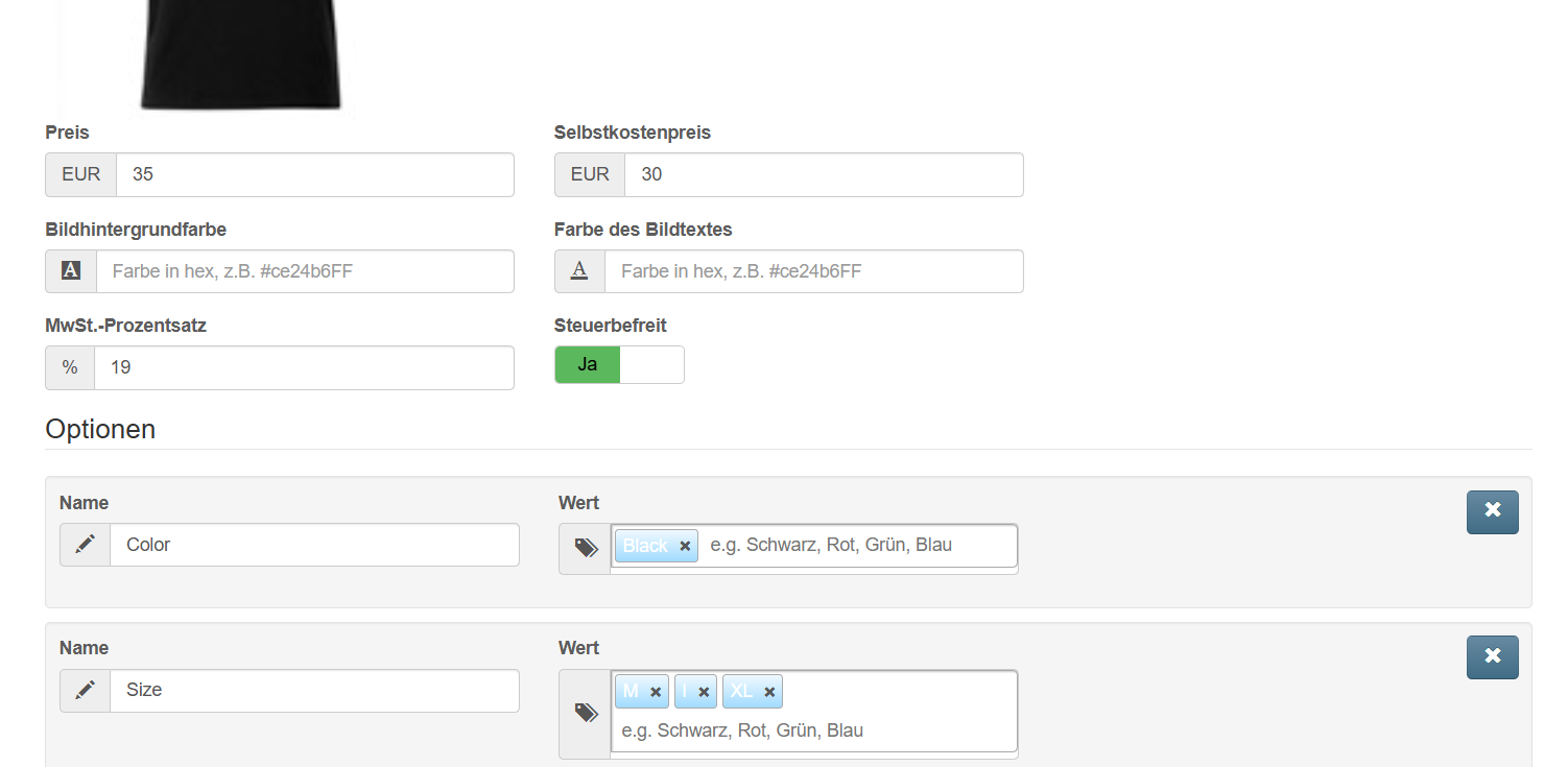 - Sie können auch mehrere Varianten für dasselbe Produkt erstellen.