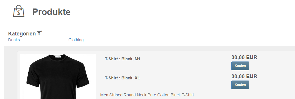 - Der Benutzer kann Produkte direkt per Stripe oder per SEPA-Mandat kaufen.